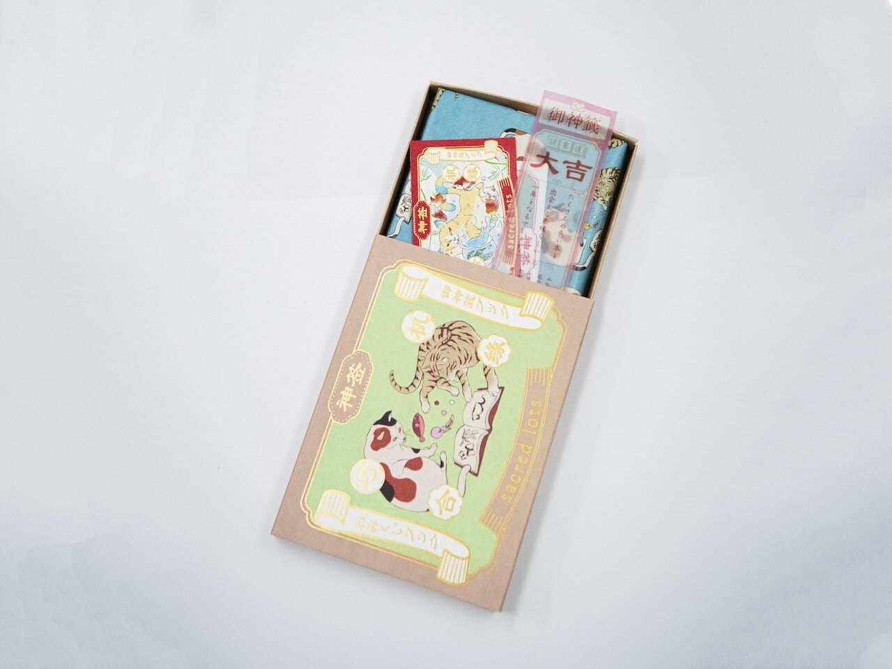 猫タイトルの本やエッセイをラッピングした《御神籤ブック》を箱詰めにしたその名も《猫箱》シリーズをセットにしました!