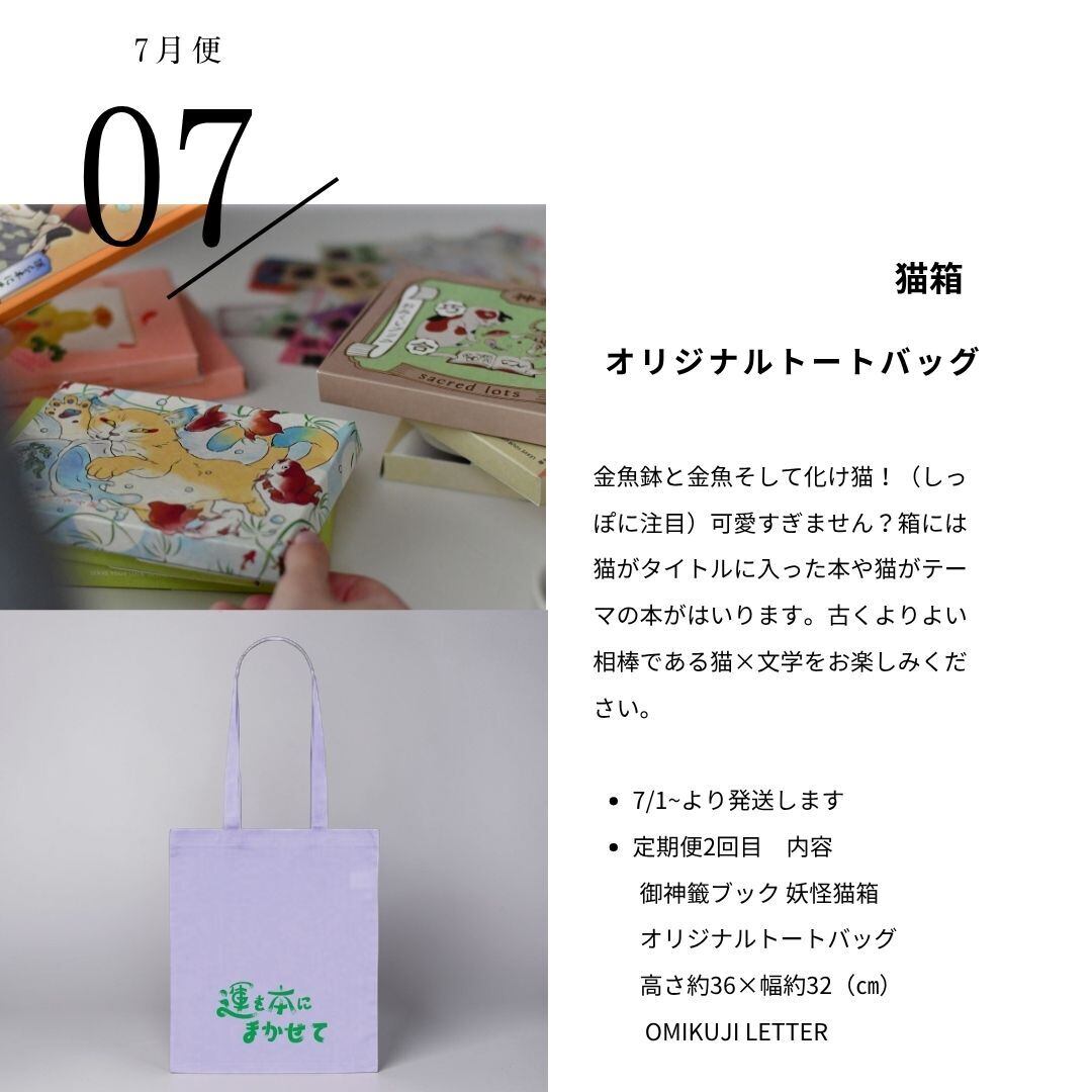 【7月】 定期便2回目 御神籤ブック 妖怪猫箱/オリジナルトートバッグパープル 高さ約36×幅約32(㎝)/OMIKUJI LETTER